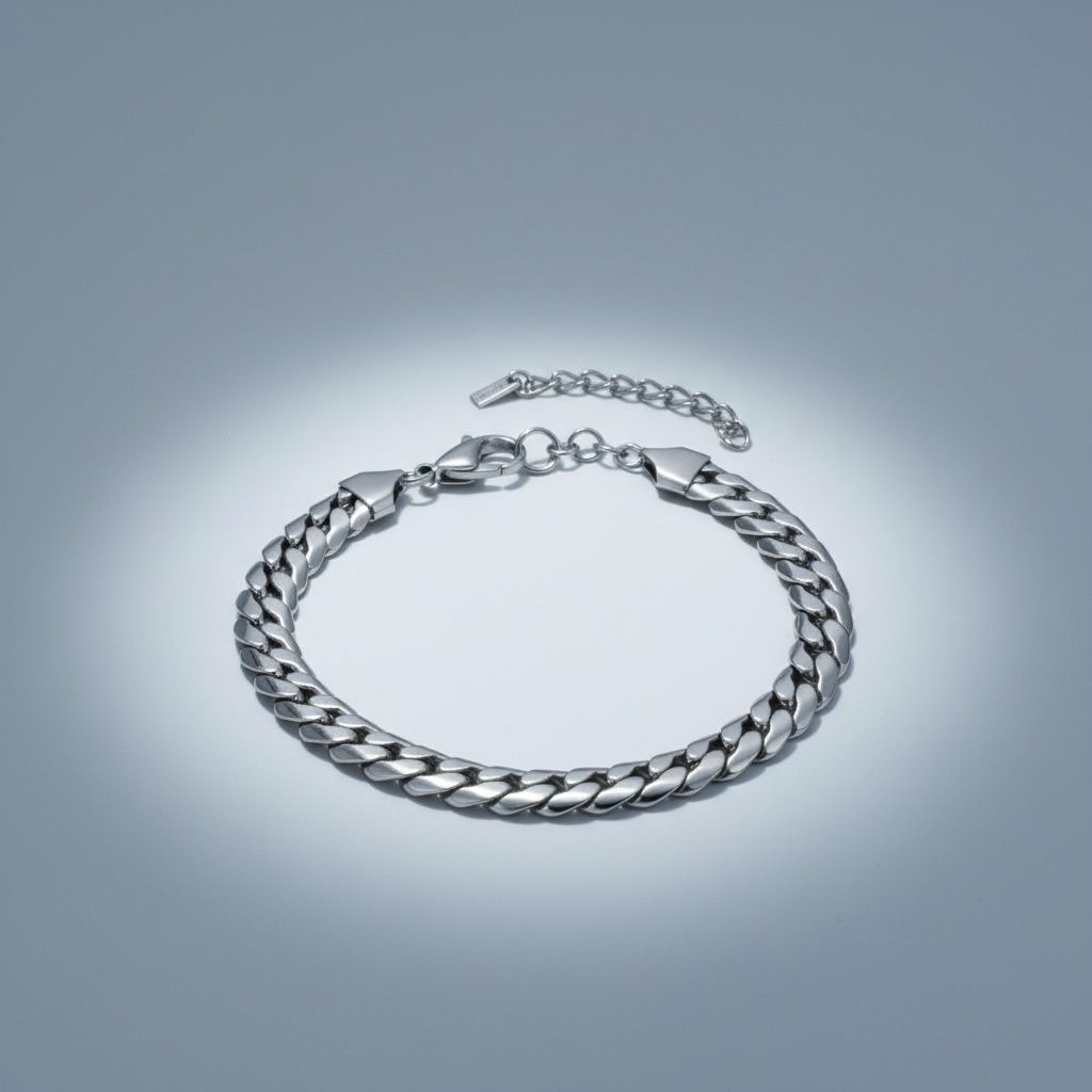 Men's Stainless Steel Chain Bracelet. Premium 8mm Stainless Steel Miami Link Chain Bracelet for Men Featuring Classic Silver Steel Color. Waterproof and Corrosion-Resistant, Making it Ideal for Items that are Worn Daily. Stainless Steel Plate Tag and Heavy Duty Lobster Clasp Closure. Hypoallergenic and Safe for Sensitive Skin.