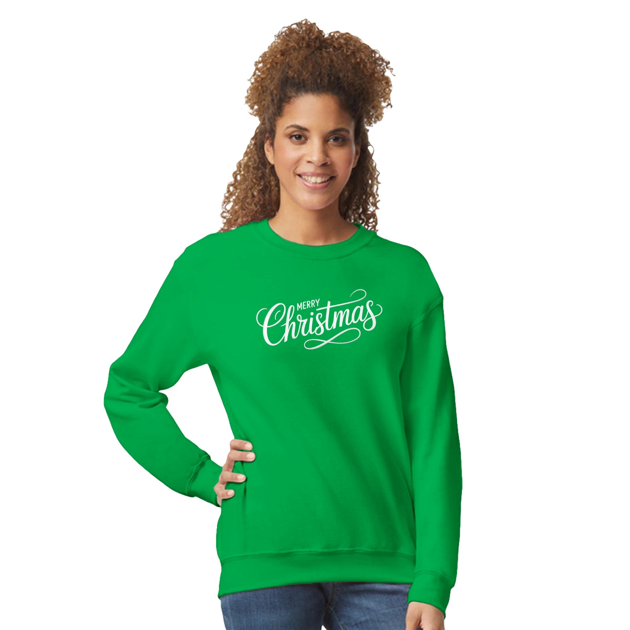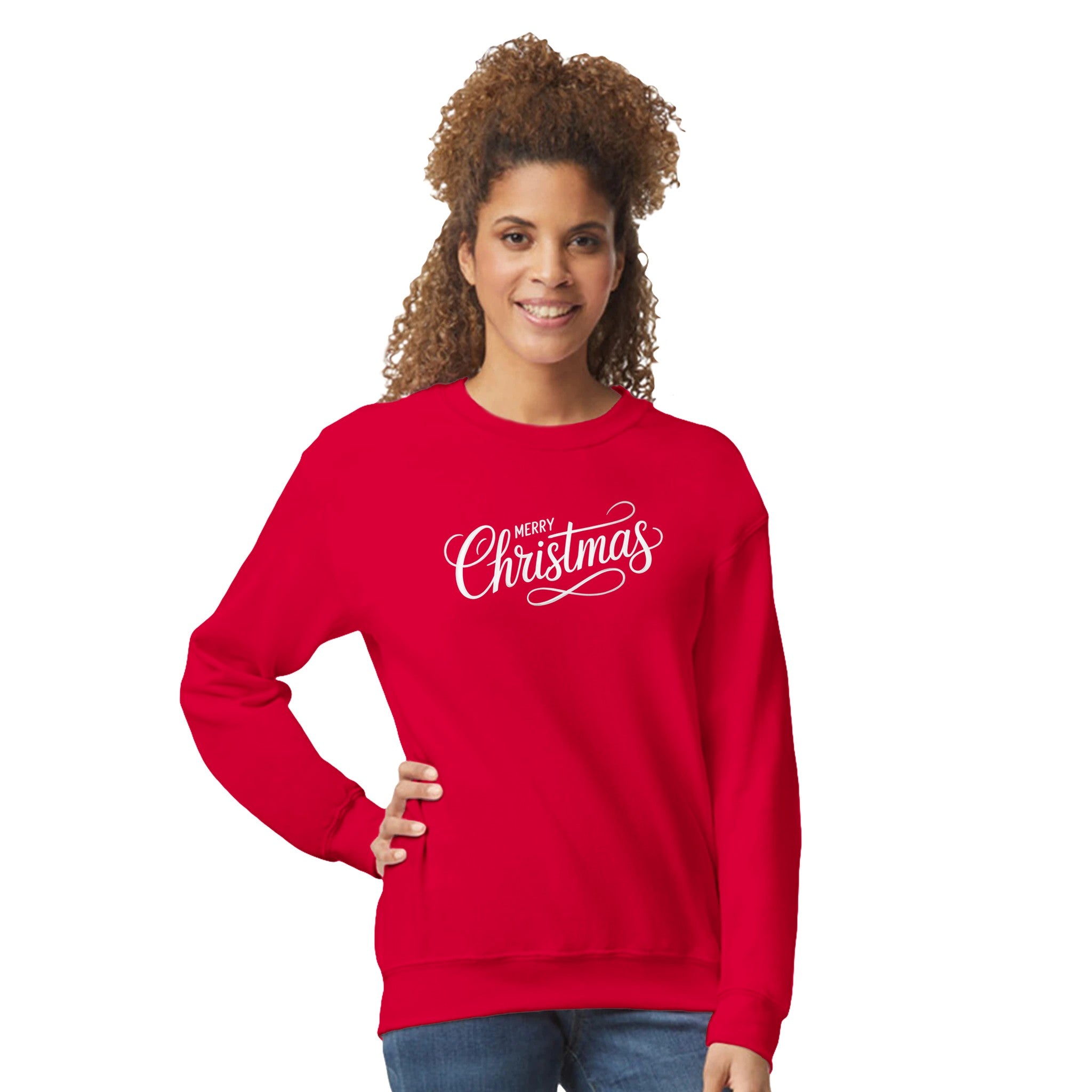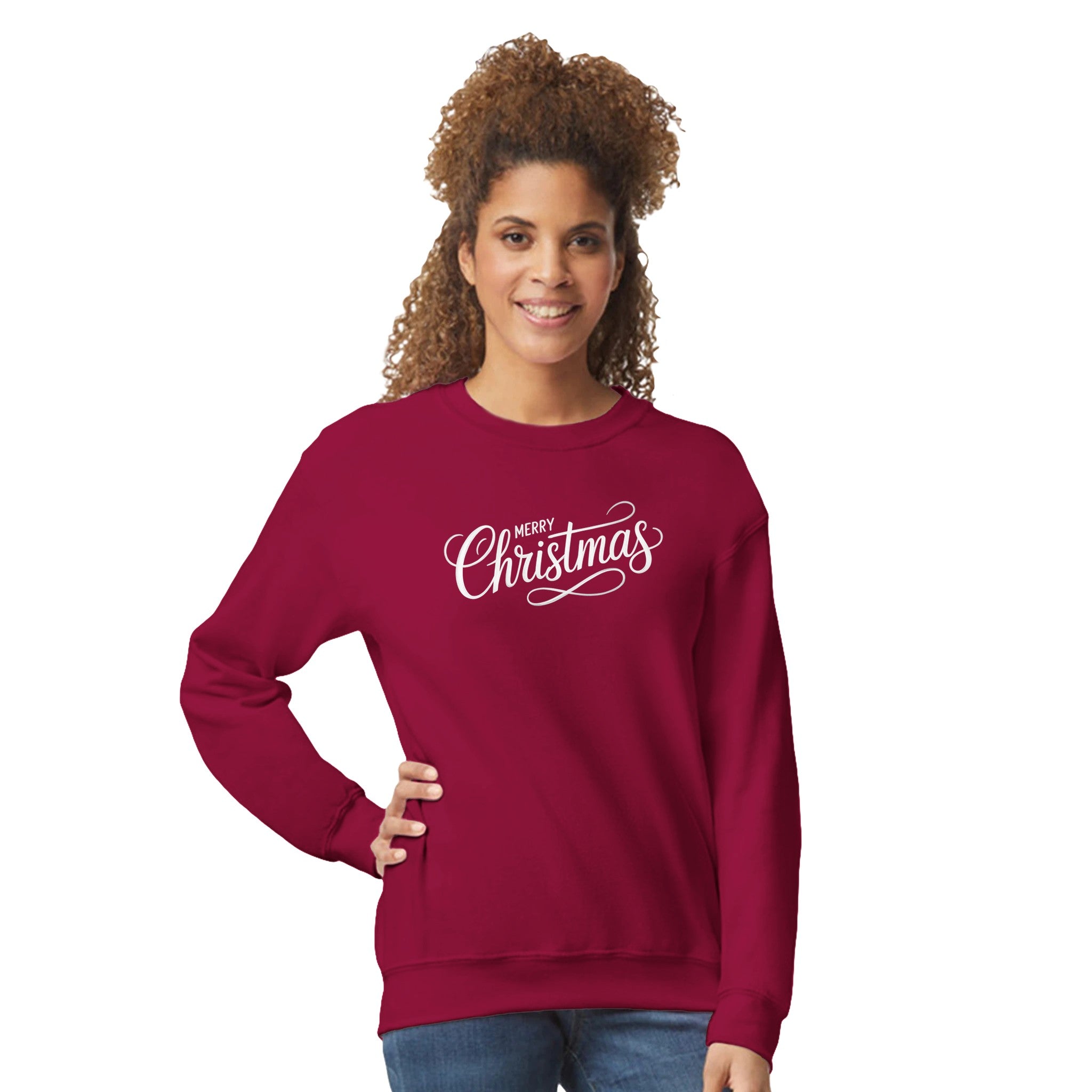 Elegant “Merry Christmas” Script Sweatshirt | Cozy Holiday Unisex Crewneck | Gildan® 18000