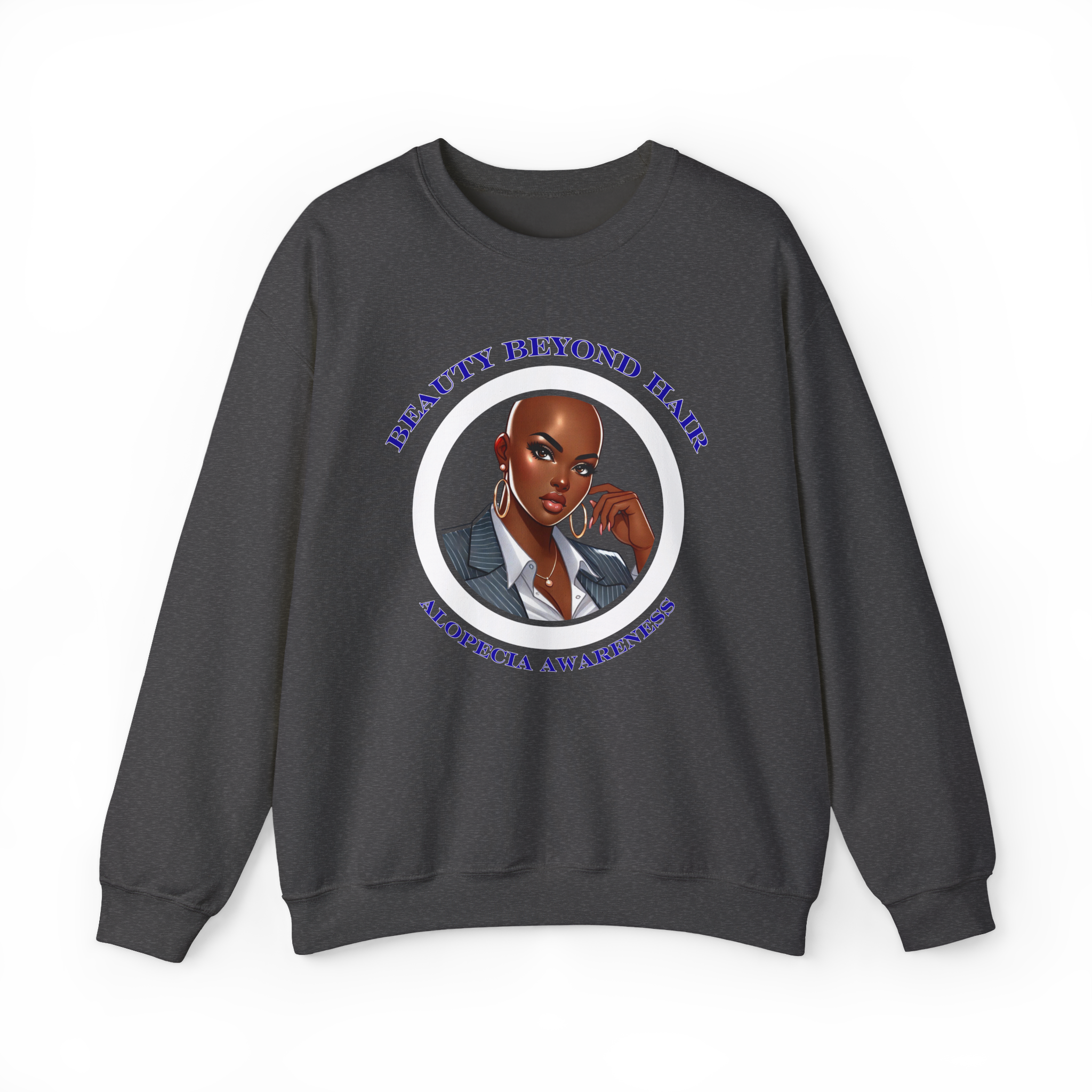Show your support for alopecia awareness with this unisex crewneck sweatshirt. Designed for comfort and style, it gently reminds us that true beauty goes beyond hair. Perfect for everyday wear, it promotes confidence and solidarity with those affected by hair loss.